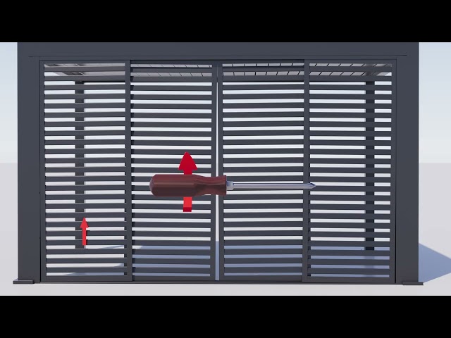 Panourile pot fi mutate într-o singură parte, eliberând calea de acces sau pot fi închise complet pentru o umbrire uniformă.