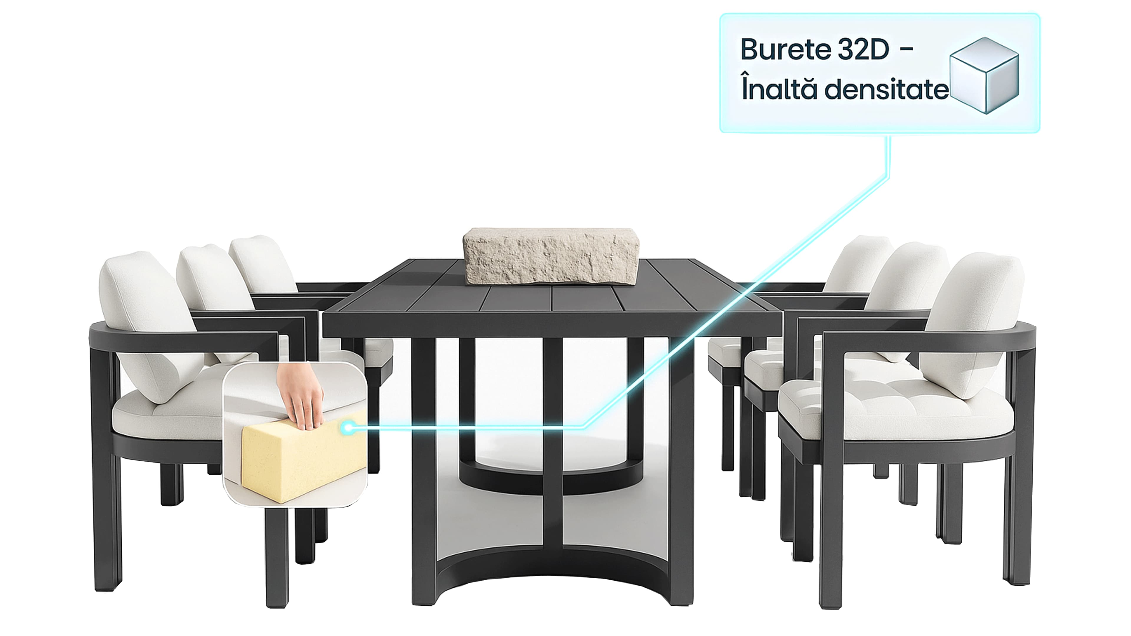 Buretii pernelor sunt bureti 32D de inalta densitate.
